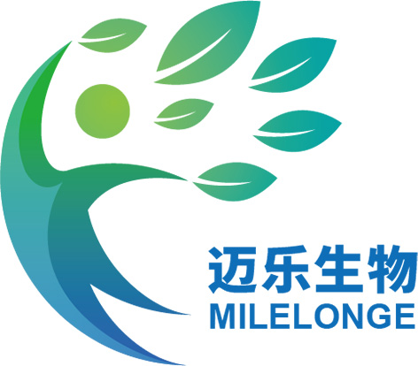邁樂(lè)生物的Logo,左側(cè)是一個(gè)張開(kāi)雙臂的小人,在他胸前,圍繞的是六片樹(shù)葉。右下方是邁樂(lè)的中英文名字。整個(gè)Logo使用綠色和藍(lán)色以及綠色和藍(lán)色之間的漸變色調(diào)。 綠色:生命、希望、健康